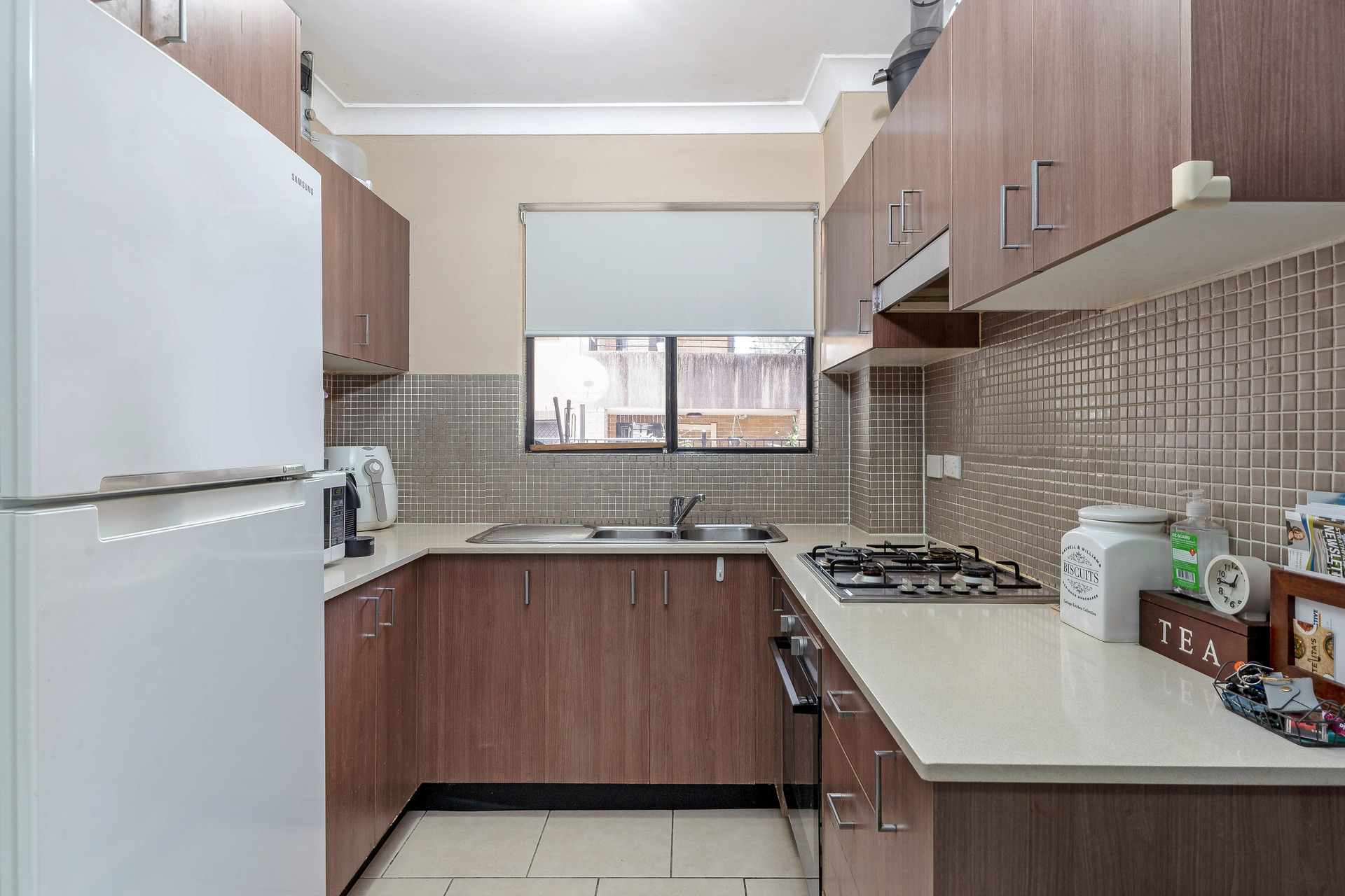 * Large modern kitchen with gas cooktop, oven and own window