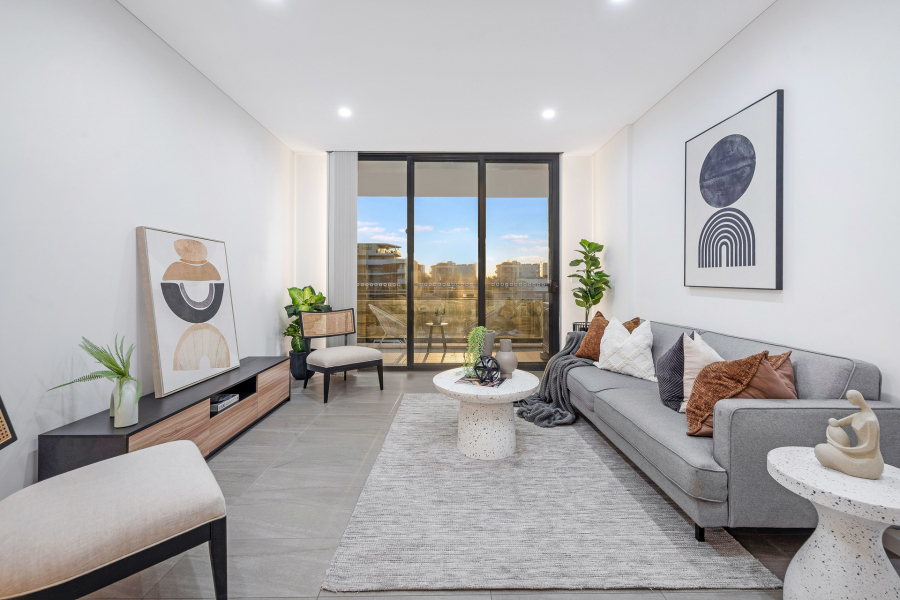 Enviably located in the heart of Homebush, this modern apartment offers a coveted lifestyle opportunity near vibrant amenities. With floor-to-ceiling glass, neutral tones, and elevated urban views, the interiors include an open living/dining area, a balcony, and two bedrooms. Located in an established building, the apartment is just 600 meters from Homebush Station.