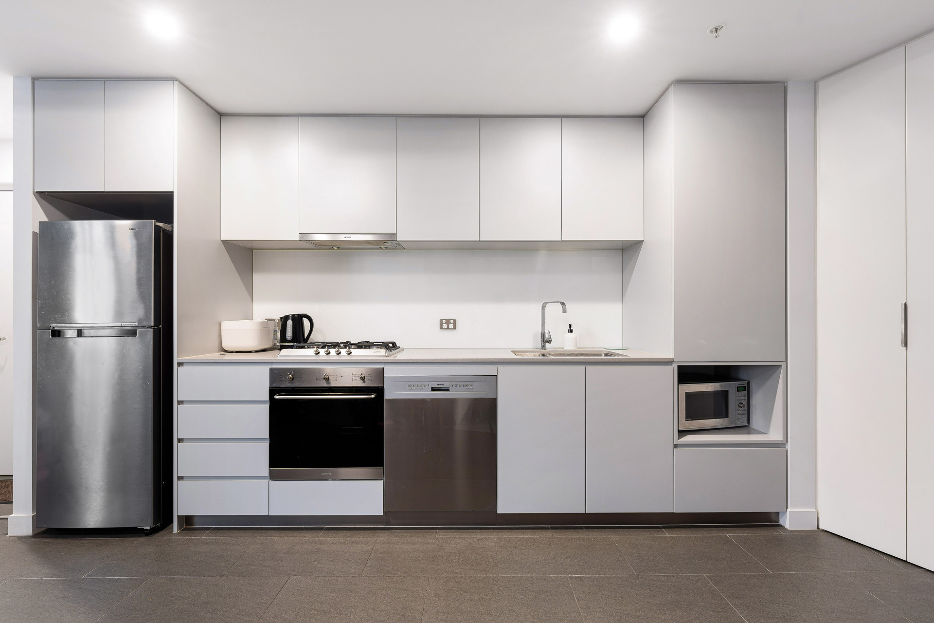 • Stylish kitchen with stone benchtops and quality Smeg appliances