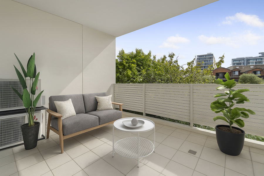 • Light-filled open-plan living area extending to a large balcony, perfect for entertaining or unwinding with a leafy outlook