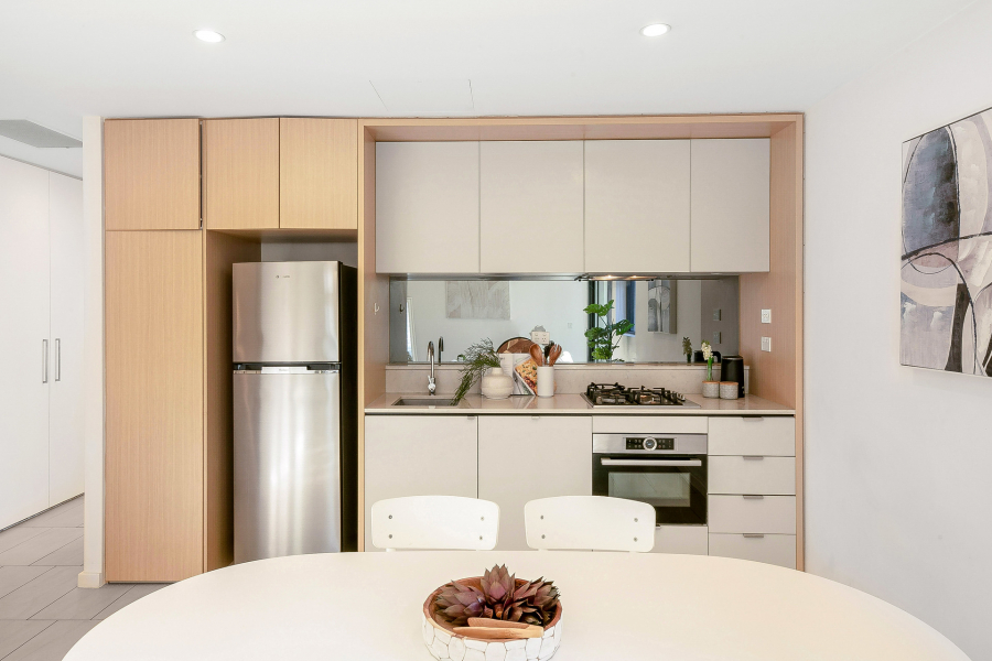 On the second floor of the ‘Uma’ apartments by Allen Jack + Cottier, this stylish residence offers a haven of space and flexibility in a key city fringe setting. This one-bedroom apartment offers a stunning open plan design with a seamless indoor and outdoor entertaining space, while the prime location is within minutes of some of the area’s most sought-after lifestyle destinations.